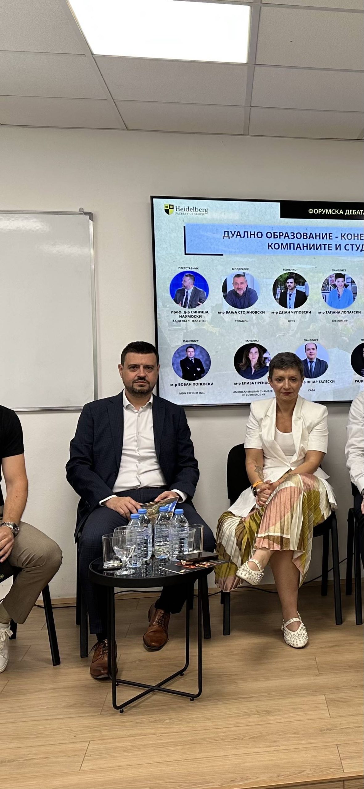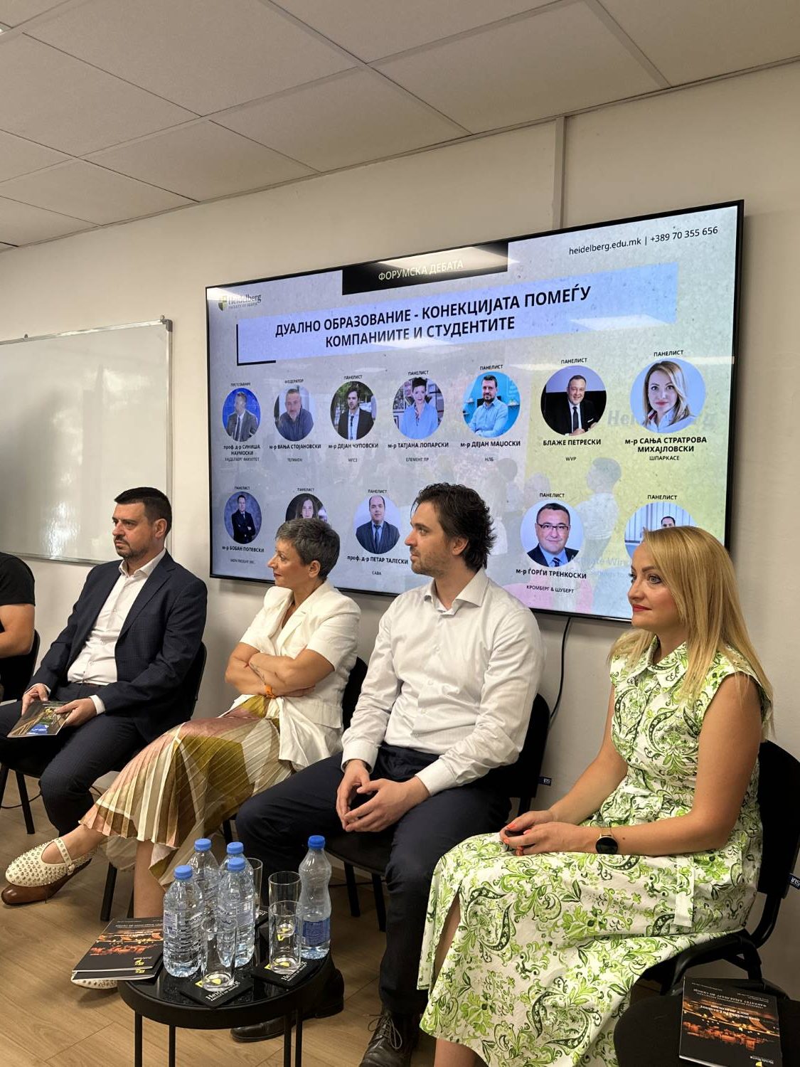 Representatives from leading companies took part in forum discussion “Dual Education – The Connection Between Companies and Students,” held at Heidelberg Faculty in Skopje. Many students attended, along with prospective applicants and their parents, eager to learn more about the benefits of dual education offered by Heidelberg, as well as the internship opportunities provided by successful companies in the country, recognizing the importance of collaboration between universities and the private sector.